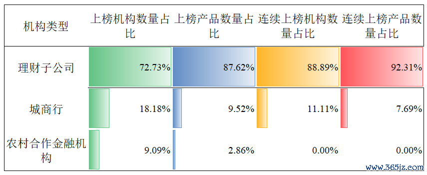 3月上榜的105只理财产品来自33家机构,较2月增加6家,主要为城商行、农商行。头部机构上榜产品集中度略有下降,上榜产品数量最多的为农银理财、交银理财、中邮理财、工银理财和兴银理财,这5家机构产品数量占比达41.90%。