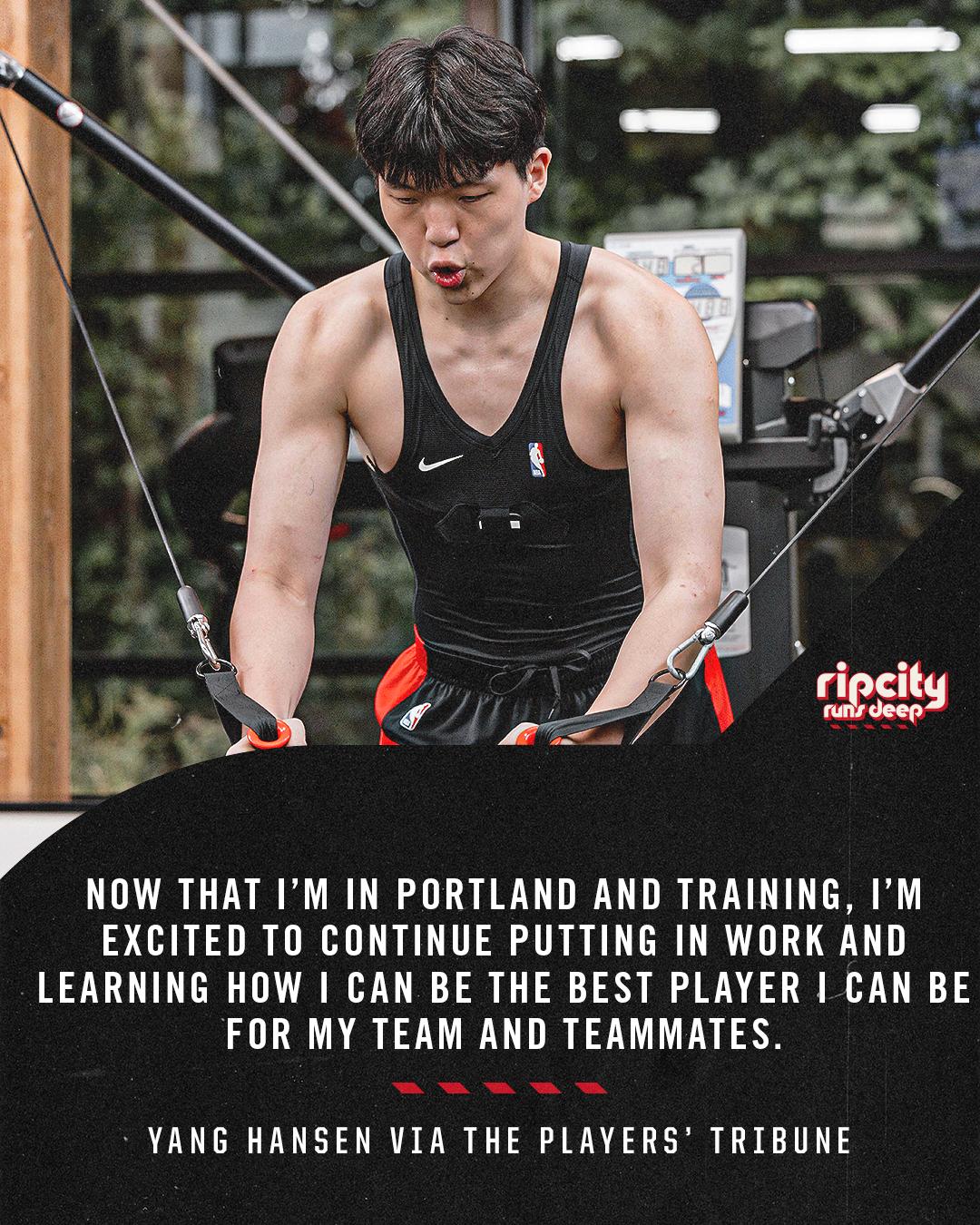 杨瀚森新赛季一定会惊艳所有人,成为开拓者这个队伍的建队基石,他写下了一篇亲笔信送给了大量球迷,也让美国球迷彻底了解了他。而开拓者官方同时也发布了对于杨瀚森的激励,他们晒出了杨瀚森在球队的最新训练照,并且表示:“小杨未来能够成为波特兰和中国球迷的骄傲。”